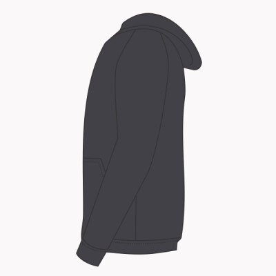 100% polyester. Brushed back fleece. Drop shoulder style. Oversized fit. Large front pouch pocket. Ribbed cuffs. Open hem. Cut out label.